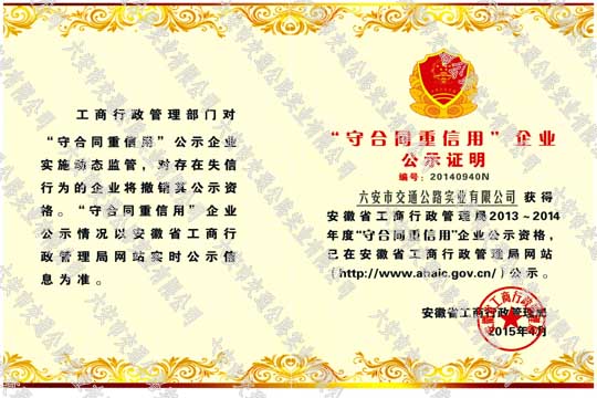 省守合同重信用證書