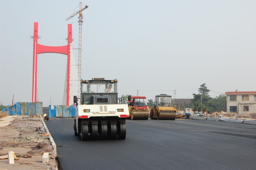 公司參加市政重點工程淠望路大橋橋面瀝青混凝土工程
